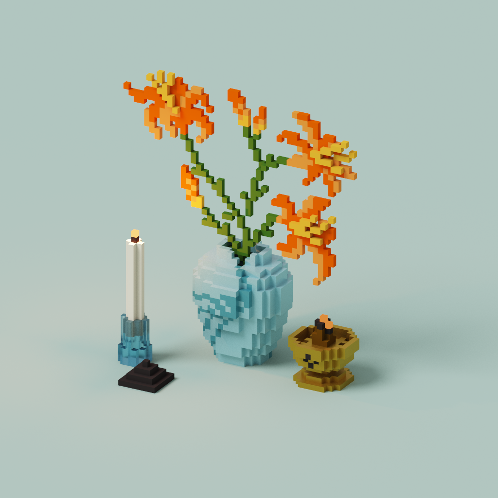 Voxel furniture assets set for the Ilovecreatives course’s 3D backgrounds.